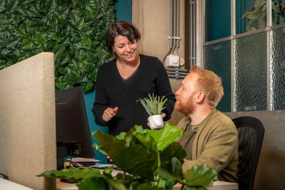 Anouk Anink is druk bezig met de styling voor een fotoshoot. In de hoofdrol: kunstplanten. Ze worden met precisie opengevouwen en belicht voor hun productfoto in de webshop van The Style Concept. Het nieuwste, gezamenlijke bedrijf van haar en Zowie Tak dat draait om hoogwaardige kunstplanten. Zachte, geweven bladeren met de hand ingezet in echt houten stammen. Ondertussen geeft Tak een rondleiding op de locatie waar ze zich vandaag bevinden: het kantoor van marketingbureau Every Day. De plek waar het is begonnen, zo blijkt.