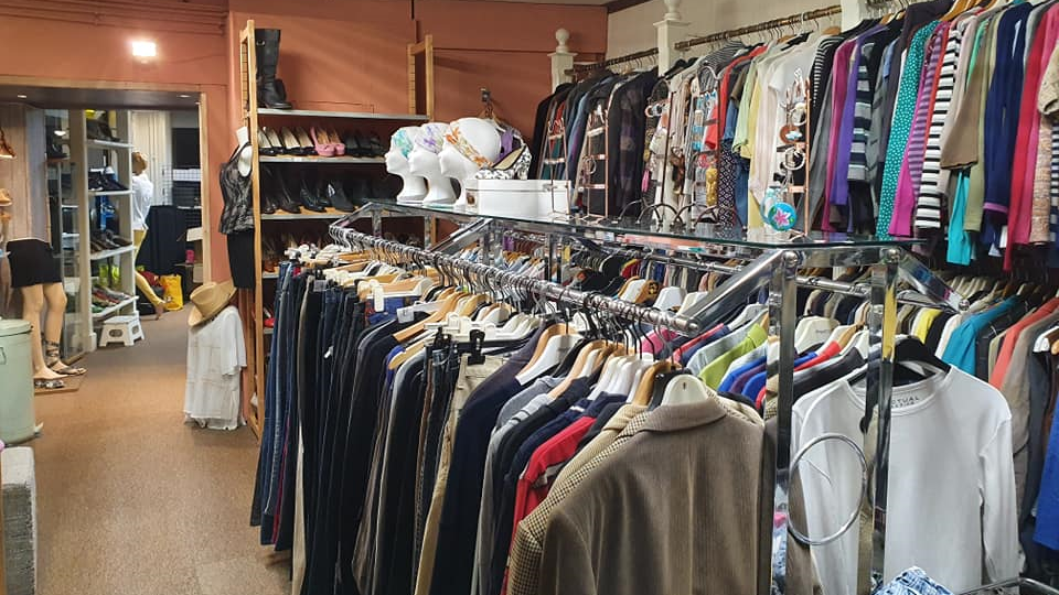 Het roze gevelbord is niet te missen. In deze knusse winkel ligt de focus op het geven van een tweede leven aan tweedehands kleding en accessoires.