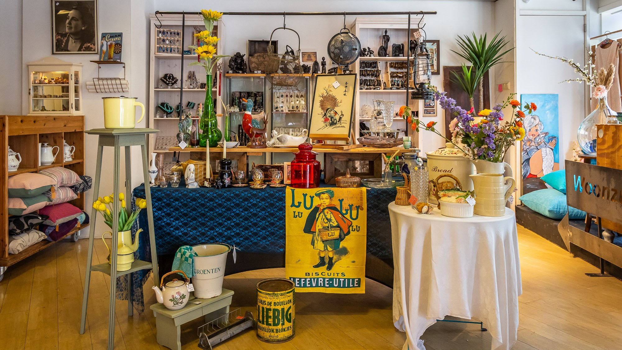Het assortiment van Woonzus & Zo is eclectisch, van vintage tot industrieel. Het grootste deel van de spullen is 40 jaar of ouder. Grote kans dus om een historisch stuk tegen te komen.