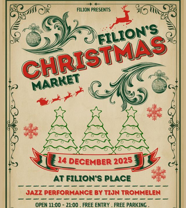 Magische kerstmarkt vol geurige lekkernijen, botanische creaties en ambachtelijke producten in en rondom Filion's Barn. Met een jazz optreden van Tijn Trommelen.